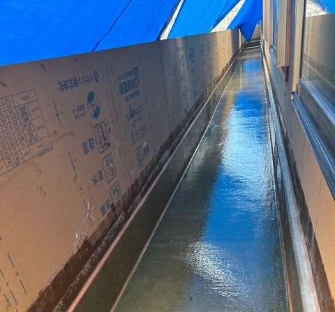 大阪府高石市の3F建てサービス付き高齢者向け住宅にてFRP防水工事行いました。
