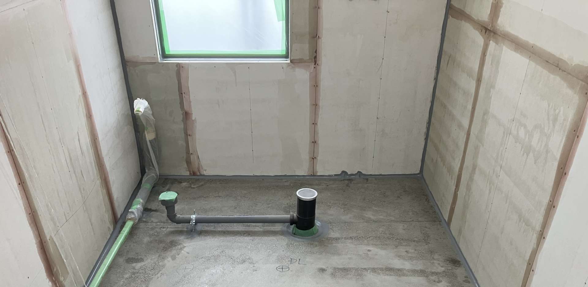 兵庫県淡路島の施設新築工事 浴室のFRP防水工事に伺いました。